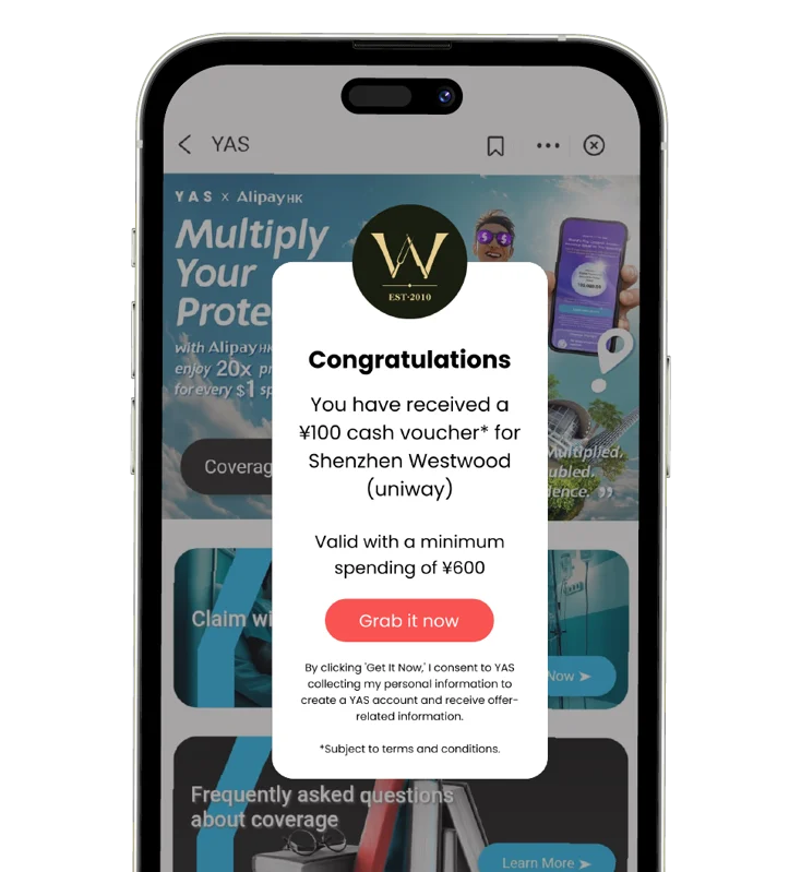 After downloading the AlipayHK app, search for 'YAS' in the homepage to access the YAS mini-app and claim your benefits for mainland China.